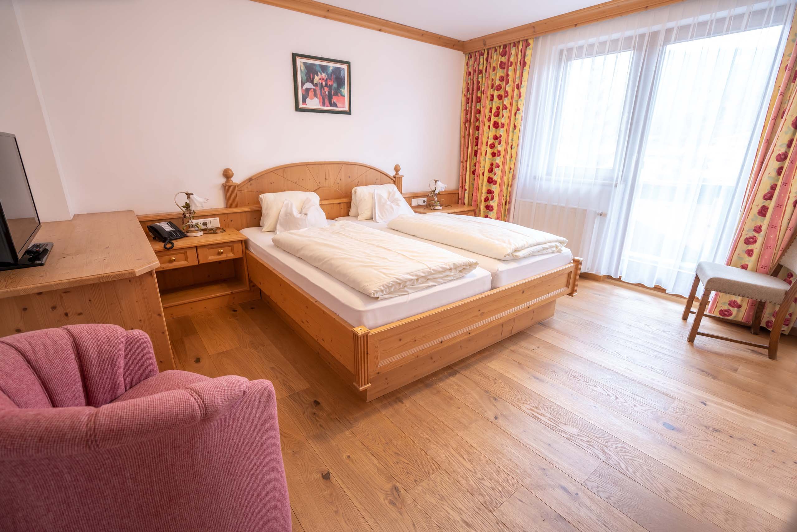 Bequem, individuell, offen – bio eben. Ein gemütlich-geräumiges Doppelzimmer mit Holzboden und Vollholzmöbeln zum Wohlfühlen, Ausruhen und Erholen.